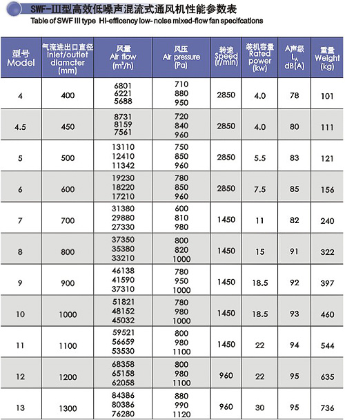 | SWF系列混流式通風機由上海交通大學、上虞風機廠共同研制開發,具有同機號風機量較離心風機大,風壓較軸流風機高,可以軸向安裝等特點。本系列風機應用場合廣泛,如各類高級民用建筑、工礦企業等。北京首都賓館、亞運工程二十三個場館所、新華社大樓、五州大酒店、北京人民大會堂、釣魚臺國賓館等單位和上海、深圳等大城市都采用此類產品,還批量出口新加坡等東南亞地區和配套出口日本。 SWF系列混流風機具有效率高、結構緊湊,安裝方便、運行可靠、噪聲低等顯著特點,它榮獲了國家級“星火”獎、上海市科技進步獎,獲國家實用新型專利、被國家科委列入國家級重點科技成果推廣項目產品。 |