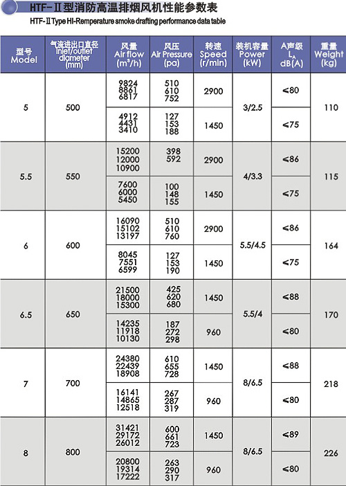 | HTF系列消防高溫排煙風(fēng)機(jī)由上海交通大學(xué)、上虞風(fēng)機(jī)廠共同研制開發(fā),其特點(diǎn)有:①耐高溫性能優(yōu)良(在400℃高溫條件下可以連續(xù)運(yùn)行100分鐘以上,100℃溫度條件下連續(xù)運(yùn)行20小時(shí)不損壞);②適用范圍廣根據(jù)高級(jí)民用建筑的不同要求,采用變速或多速驅(qū)動(dòng)形式,以達(dá)到一機(jī)二用,即常用通排風(fēng)和消防使用時(shí)高溫排煙的目的);③效率高;④安裝方便,占地較離心風(fēng)機(jī)小。 該系列風(fēng)機(jī)已榮獲國(guó)家級(jí)“星火”獎(jiǎng),獲國(guó)家專利證書,浙江省技術(shù)進(jìn)步獎(jiǎng)等。 |